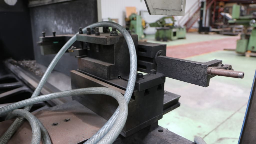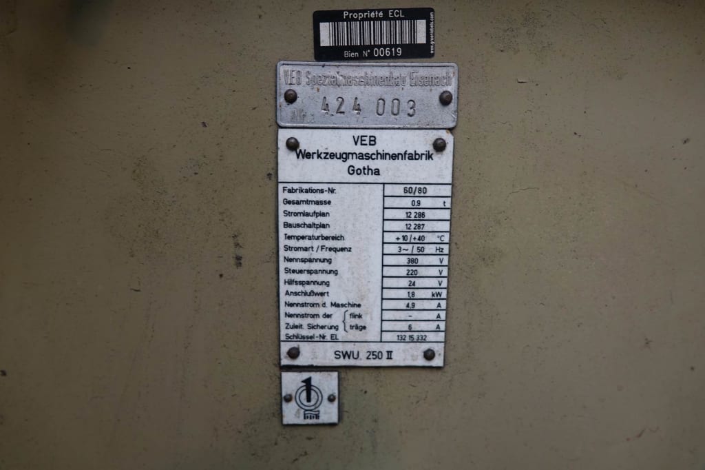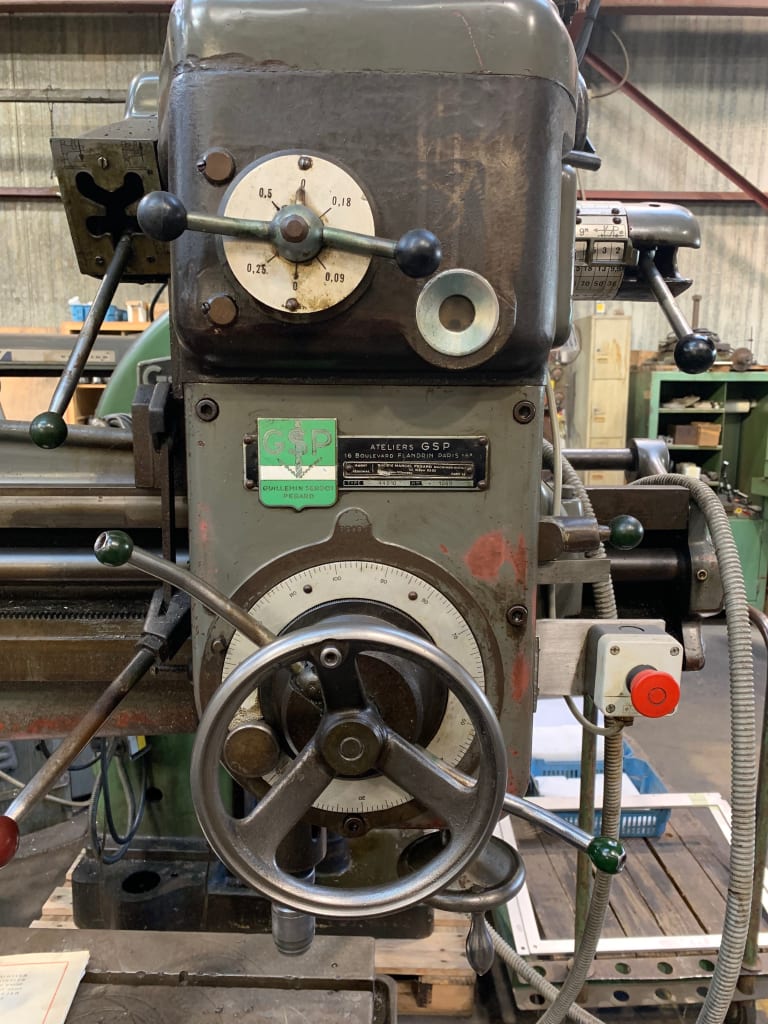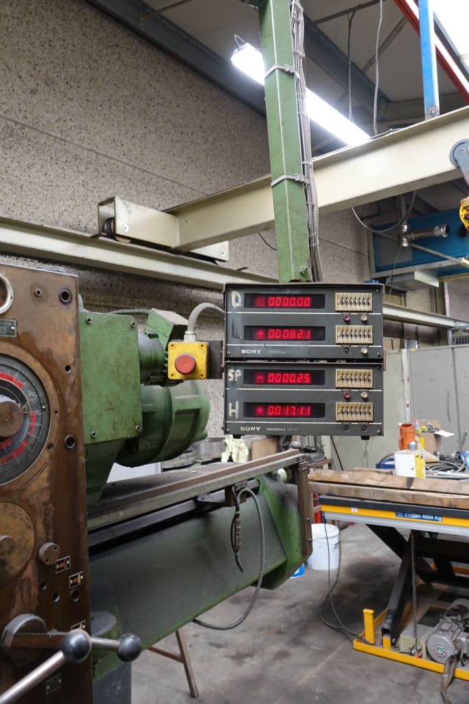 Two axis digital readout- Height of centers 315mm - Distance between centers 2000mm - max. admitted Ø over the bed 725mm - Maximum swing over cross-slide 300mm - Hole through spindle 82mm - Spindle speed 11/1250RPM - Number of speeds 36 - Dimensions 4000x1400x1600mm - Approx. 5000kg - Origin: France. NOTE - A loading fee of EUR2000 will be added to the invoice. Location: 59300 Valenciennes, France - LOT 29