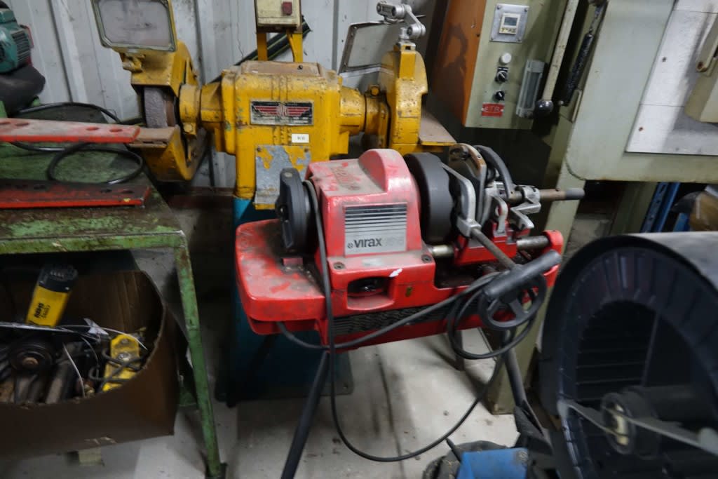 Parts max Ø 250mm - Maximum grinding length 450mm - Max length of the parts 600mm - Longitudinal travel 500mm - Cross travel 230mm - Spindle speed 2200/3500/5200 RPM - Table area 950x120mm - Orientation angle of the swivelling table 0-90° - Maximum grinding wheel diameter 160 mm - Power 1.8 kW - Dimensions 1500 x 1000 x 1600 mm - Manual table movement 500 mm - Automatic table movement 300 mm - Vertically adjustable grinding head 250 mm - 350° rotating grinding head - 15° tilting grinding head - Approx. 900 kg - Origin: France. NOTE - A loading fee of EUR 200 will be added to the invoice. Location: 59300 Valenciennes, France - LOT 33