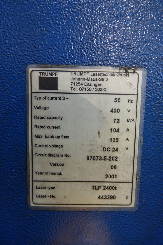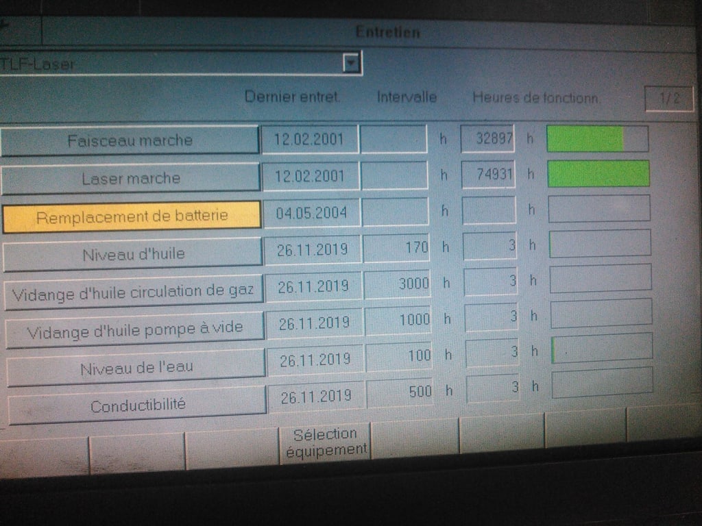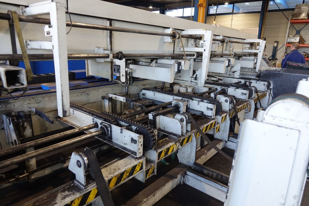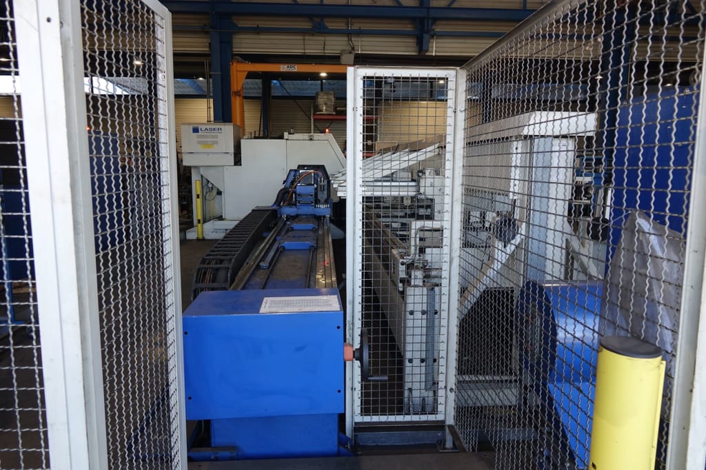 Year : 2001 - Power 2,4 KW - Capacity in tube 154mm - Capacity in square 120mm - Capacity in rectangle 140x80mm - Maximum thickness in steel 8mm - Maximum thickness in stainless steel 4mm - Maximum thickness in aluminium 4mm - Magazine width 6500 mm - Cutting width 3000 mm - Maximum permissible weight: 20 kg/ml - Type: CO2 - EQUIPMENT: Bar feeder - Workpiece ejector - Waste ejector - Approx. 20,000 kg - Origin: Germany. NOTE - A loading fee of EUR 3,000 will be added to the invoice. Location: 59300 Valenciennes, France - LOT 4