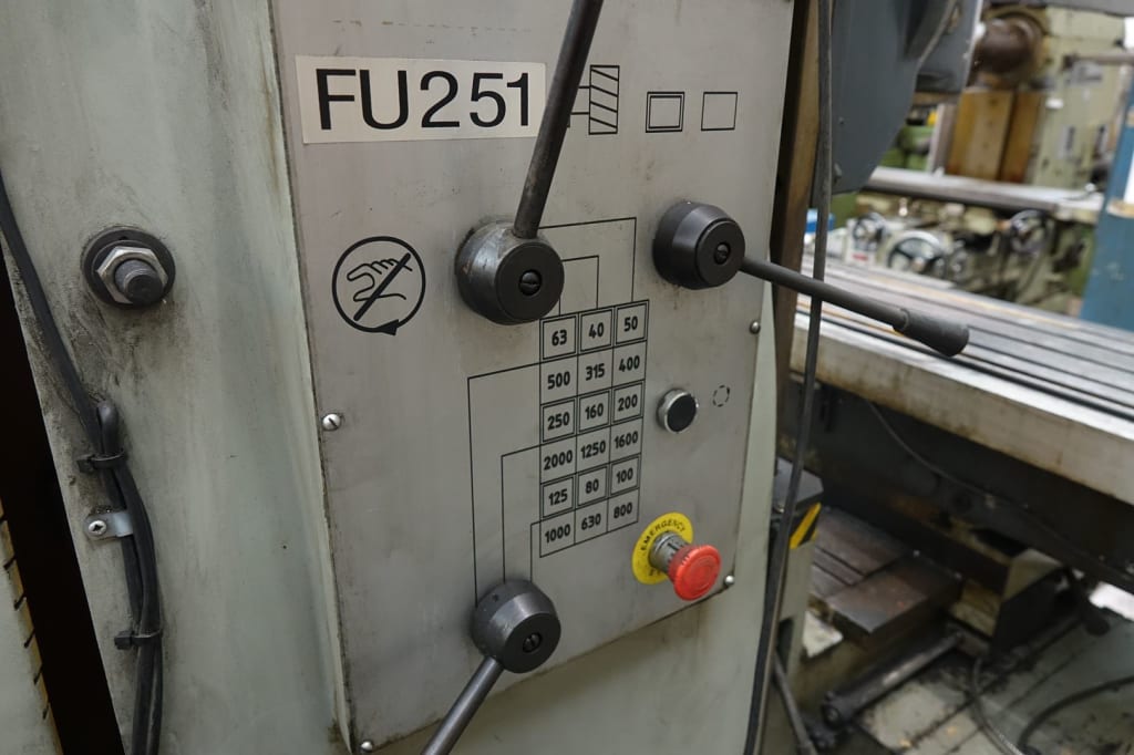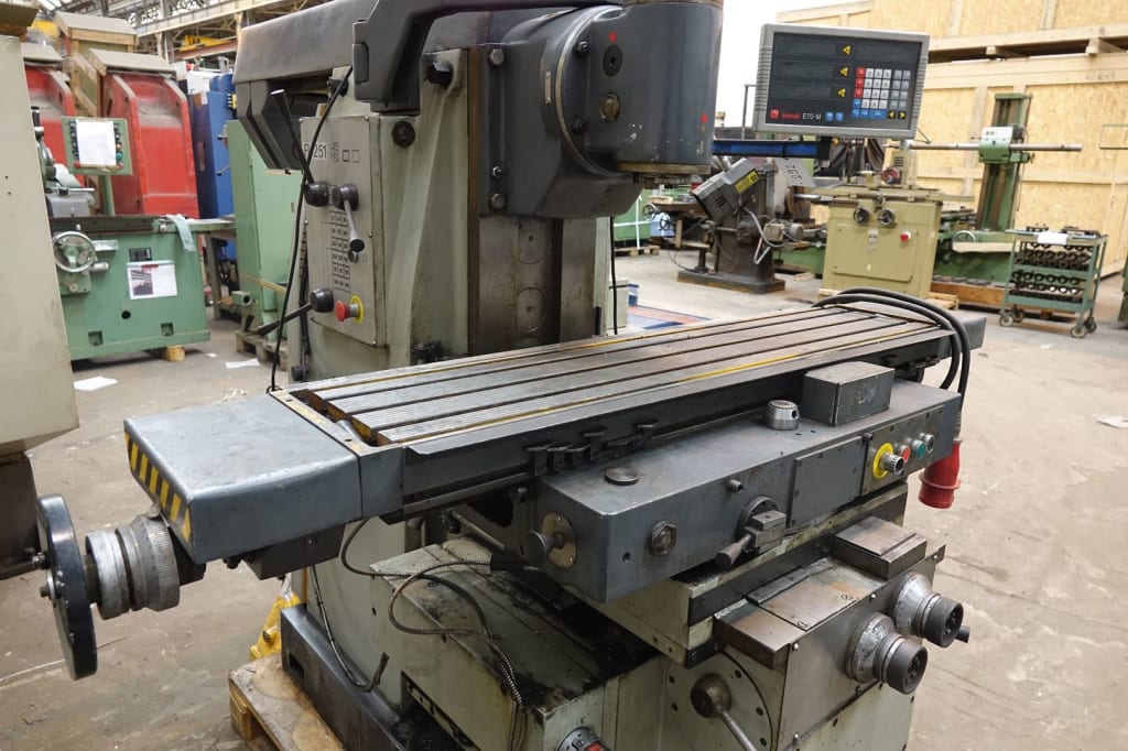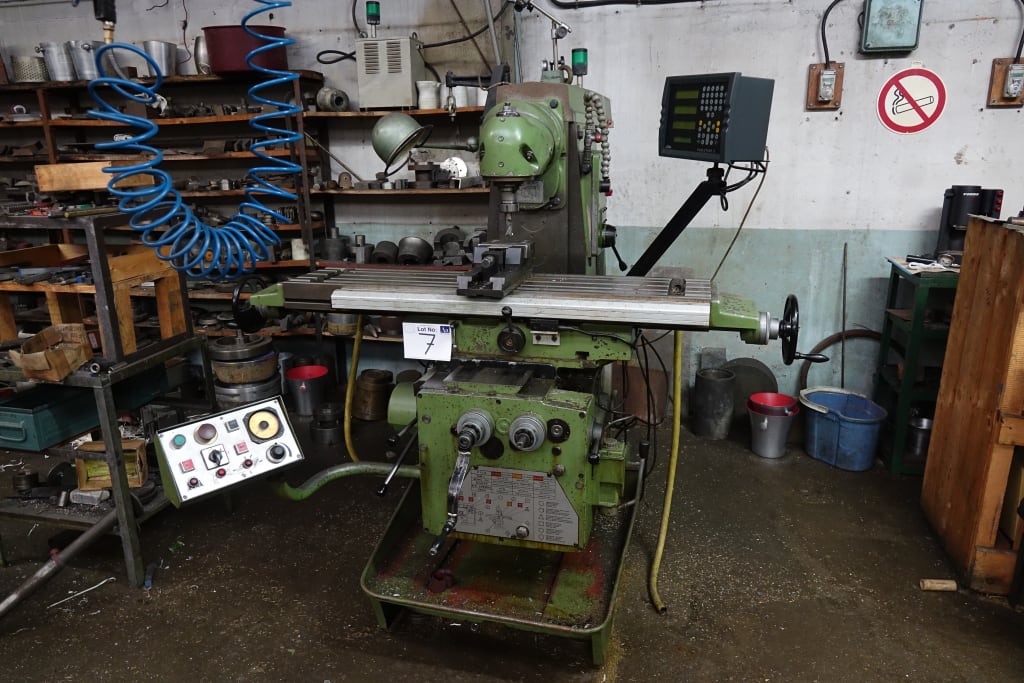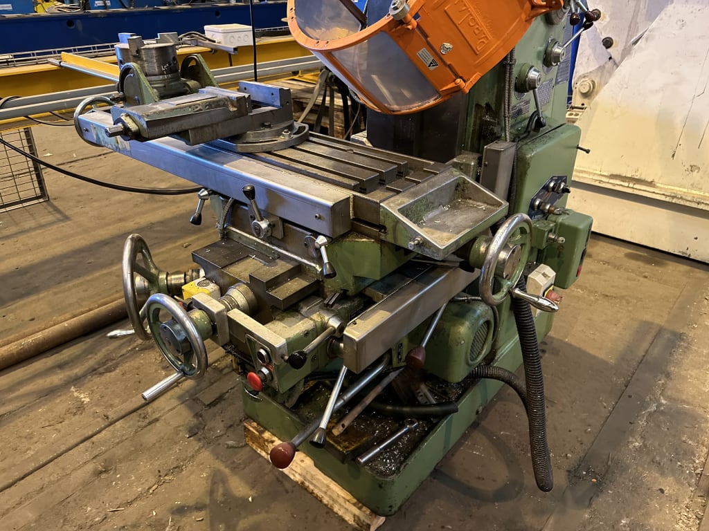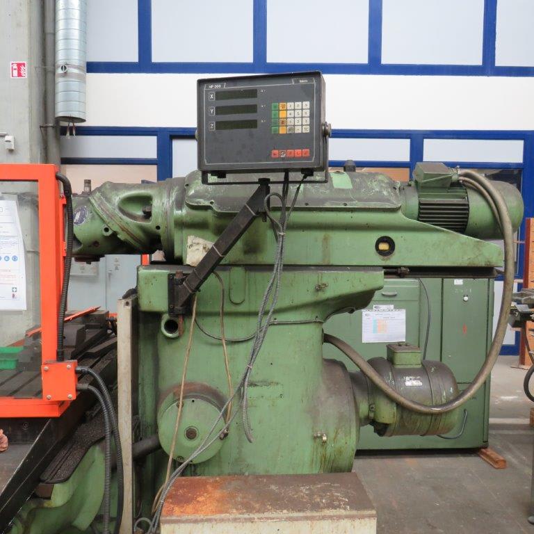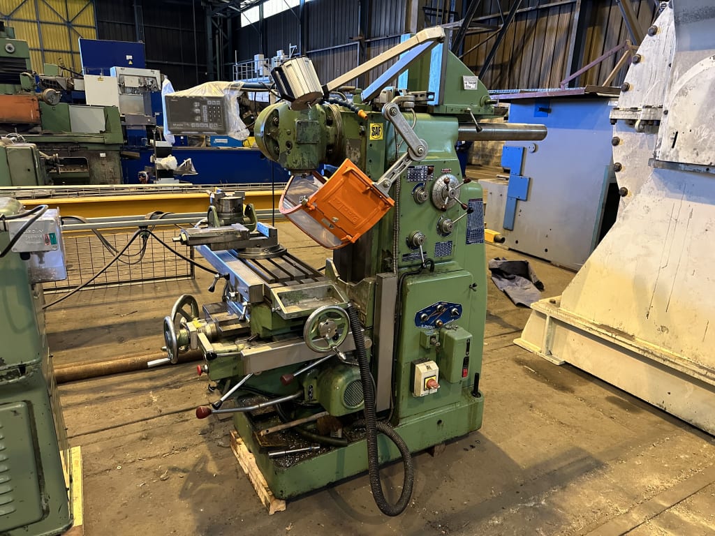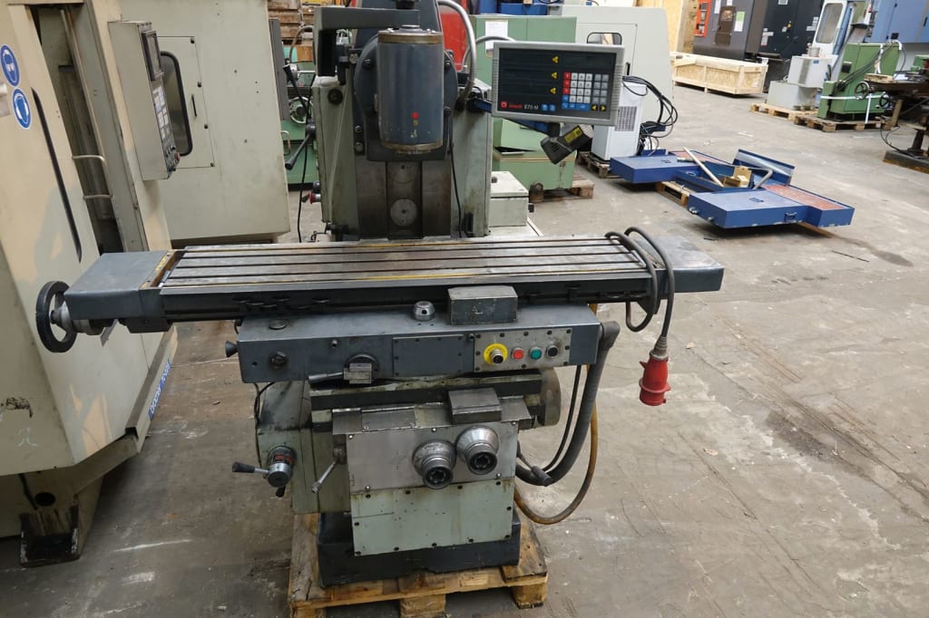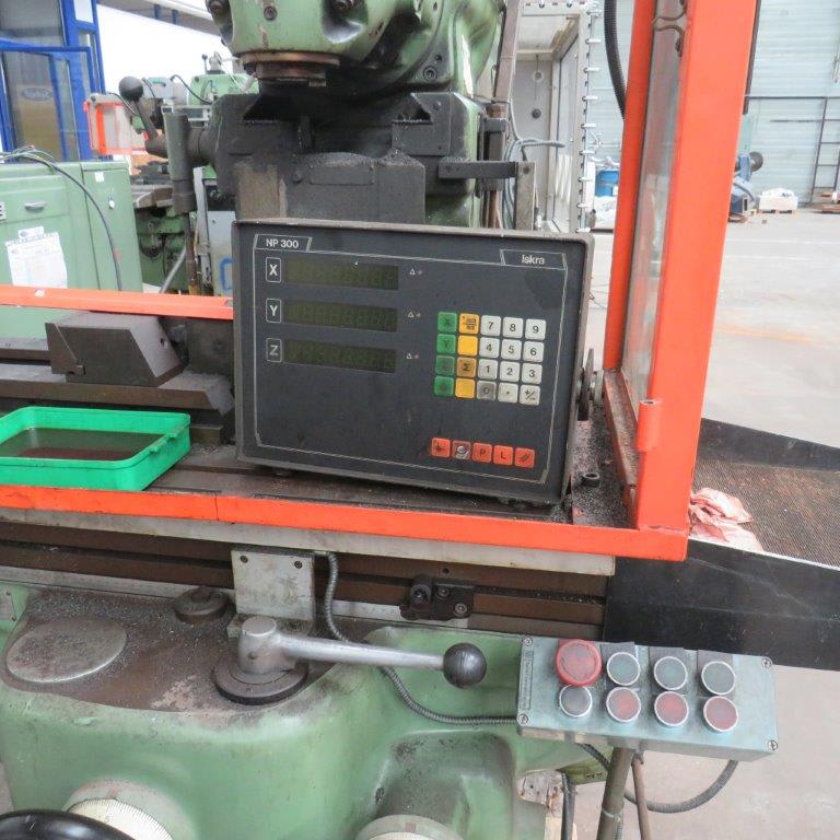 LLongitudinal travel - X 765mm - Cross travel - Y 230mm - Vertical travel 390mm - Table area 1120 x 250mm - Spindle taper ISO 40 - Number of spindle speeds 18 - Variable spindle speeds 40 to 2000 RPM - Longitudinal and cross feeds 12,5 to 630mm/min - Vertical feeds 5.2 to 262mm/min - Rapid feeds 1040 - 2500mm/min - Dimensions 200 x 2100 x 1900 mm - Spindle motor 4 kW - Universal head - 3-axis display - Two eyepieces - Approx. 3000 kg - Origin: Netherlands. NOTE - A loading fee of EUR 500 will be added to the invoice. Location: 59300 Valenciennes, France - LOT 17
