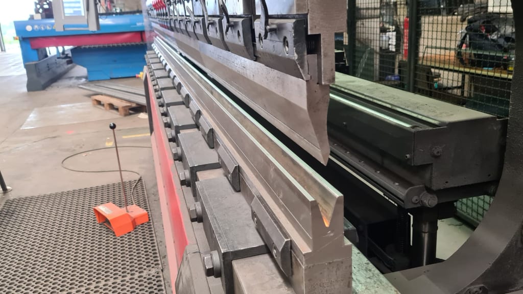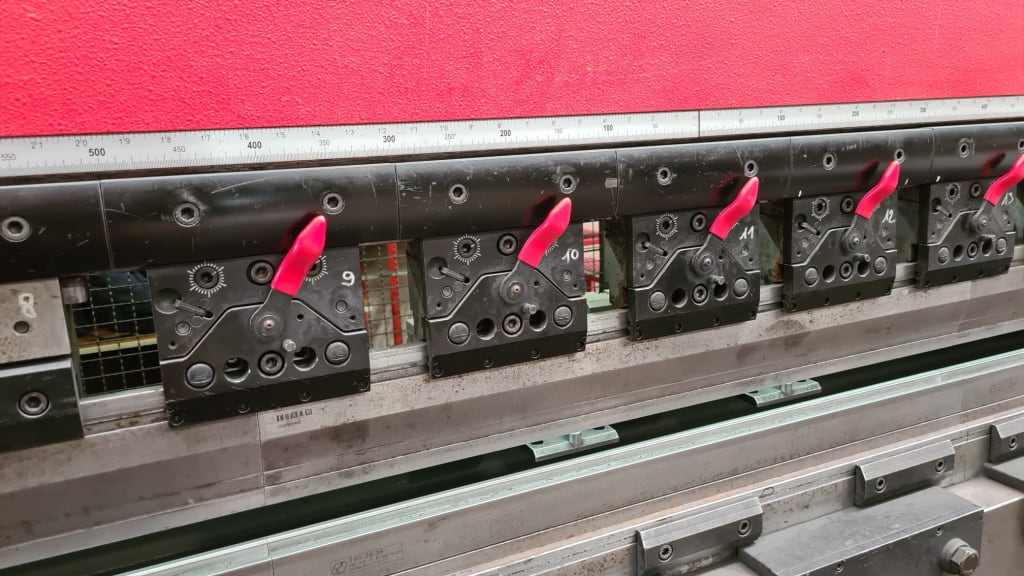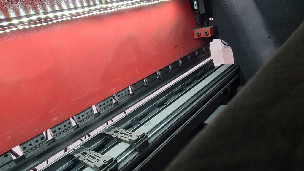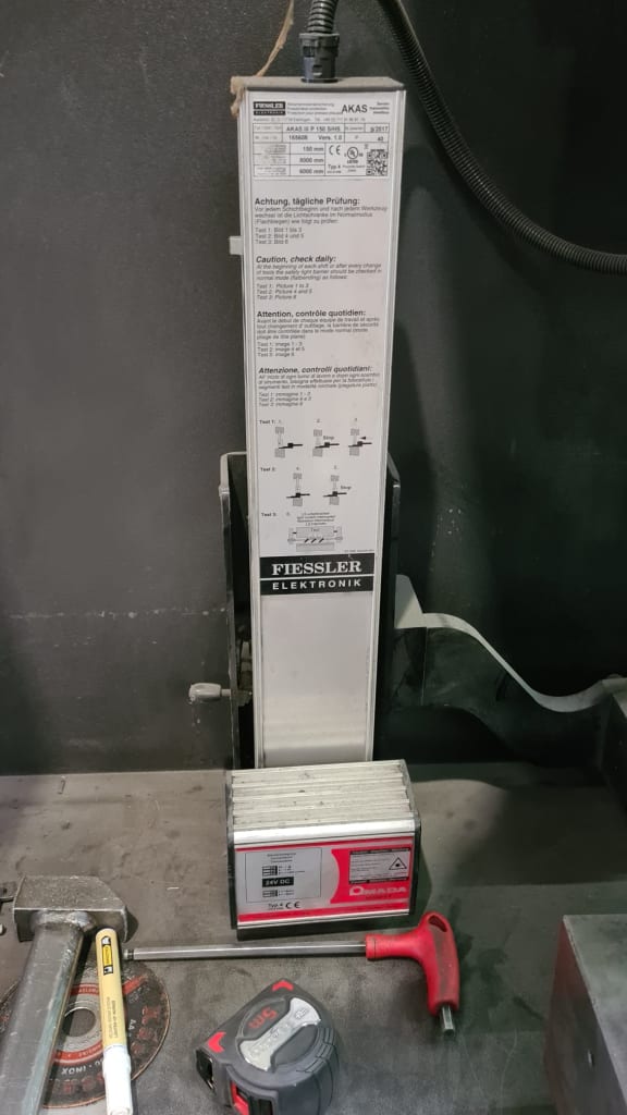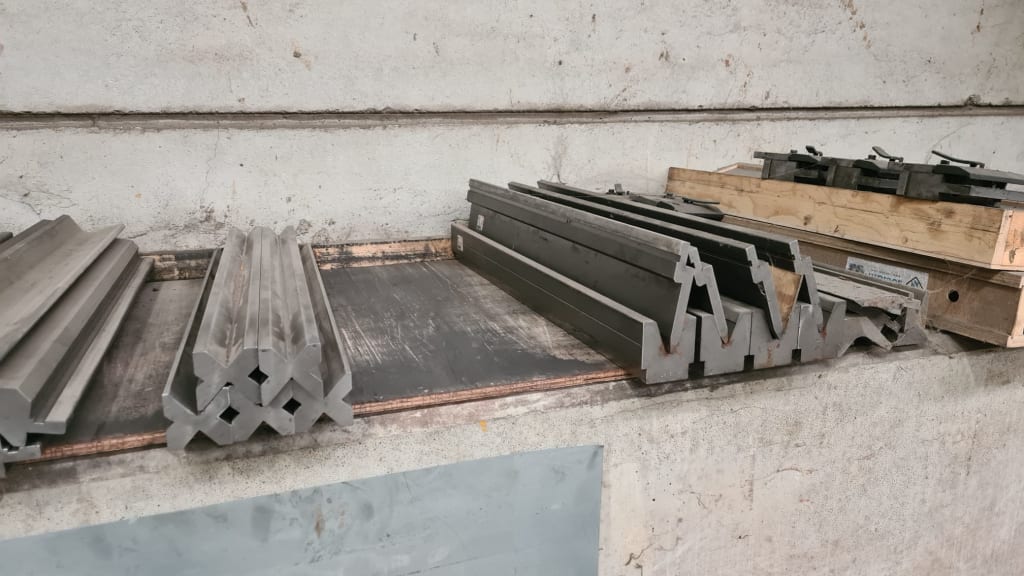 Capacity 100 T - Bending length 3110mm - Distance between uprights 2705mm - Throatdepth 420mm - Vertical travel 200mm - Number of axes: 8 - Dimensions 4320x2800x270mm - origin Japan - Approx. 30Kg - Origin : Italy. NOTE - A loading fee of EUR 850 will be added to the invoice. - Location: 59300 Valenciennes, France - LOT 3