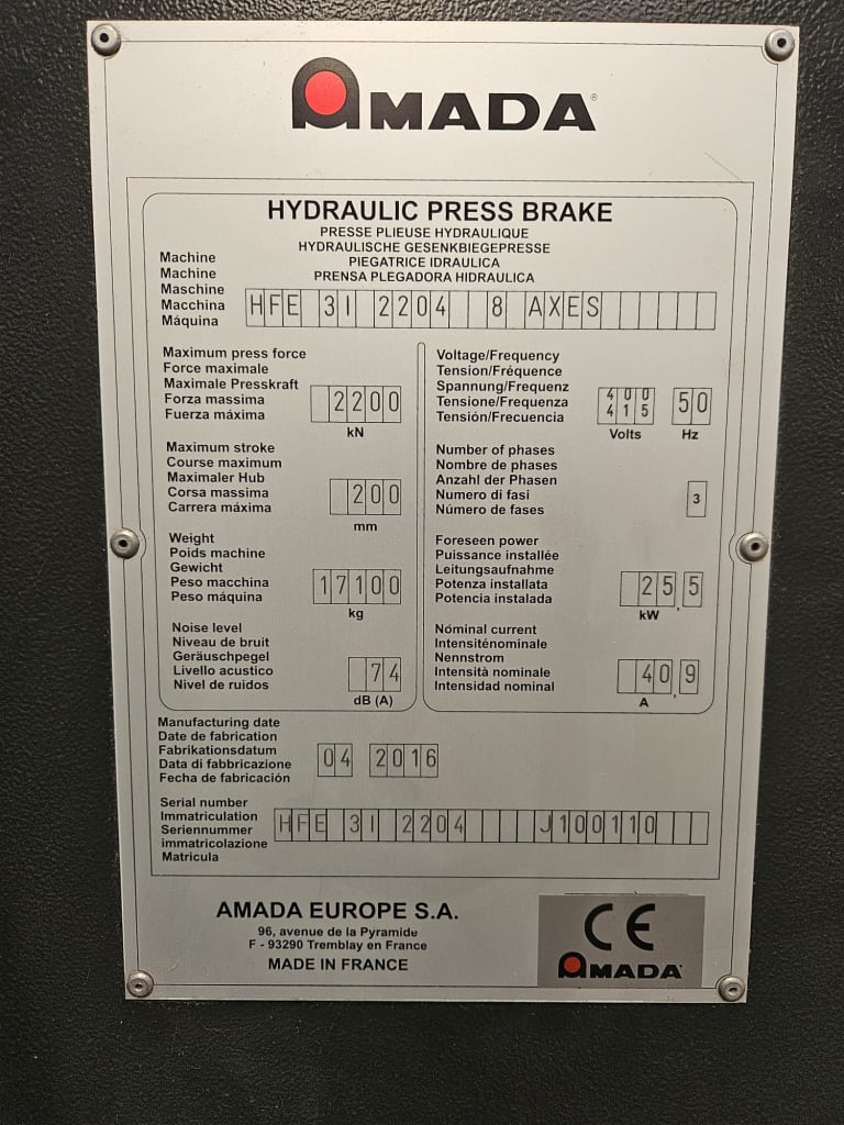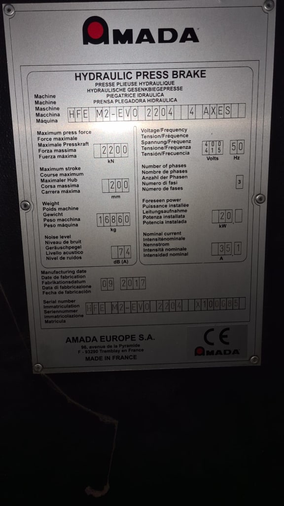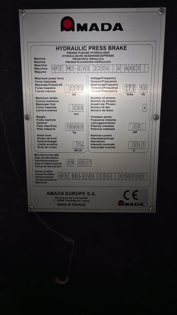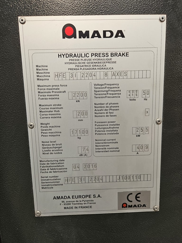AMADA HFE M2-EVO 2204, 4 AXES Press Brake