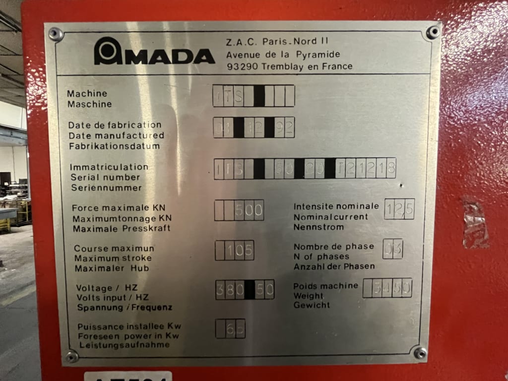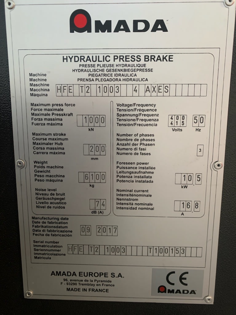 CNC AMADA HFE T2 1003 Press brake 8 Axes from 09/2017 + crush tool base + tool line