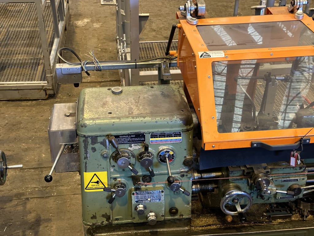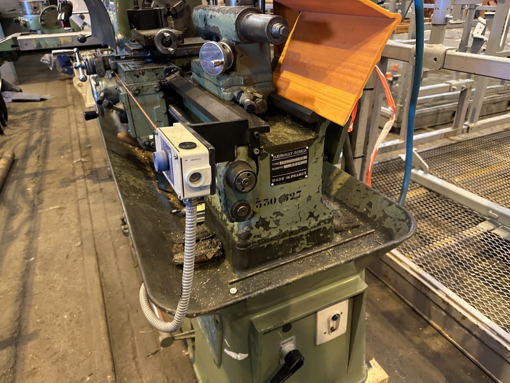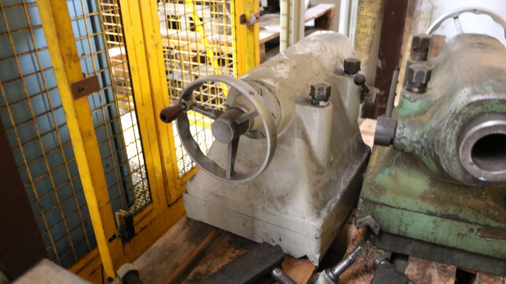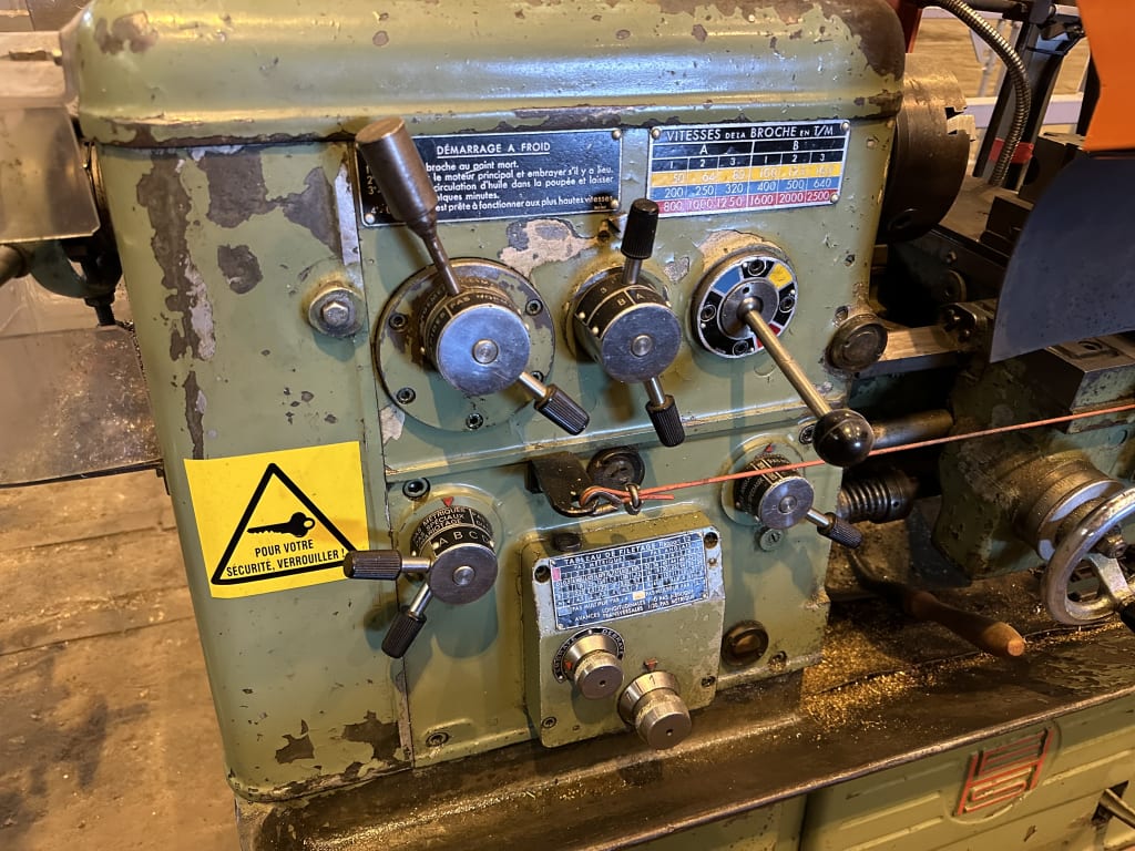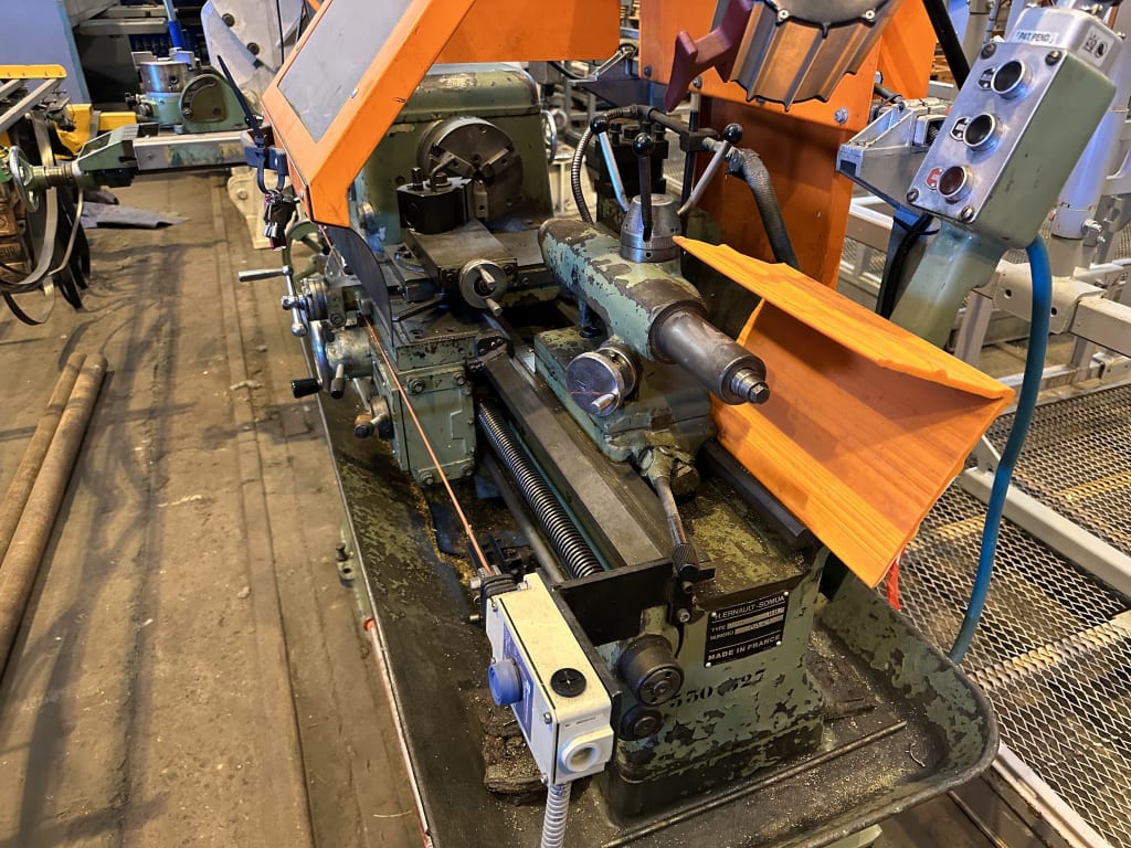Spindle speed 50-2500 rpm - Distance between centers 500mm - Height of centers 150mm - Ø of the tailstock sleeve 45mm - Width of the bench 210mm - Chuck Ø 160mm - Dimensions 1700x960x1800mm - Approx. 1200Kg - Origin : France. NOTE - A loading fee of EUR 350 will be added to the invoice. Location: 59300 Valenciennes, France - LOT 36