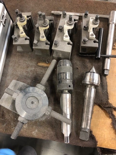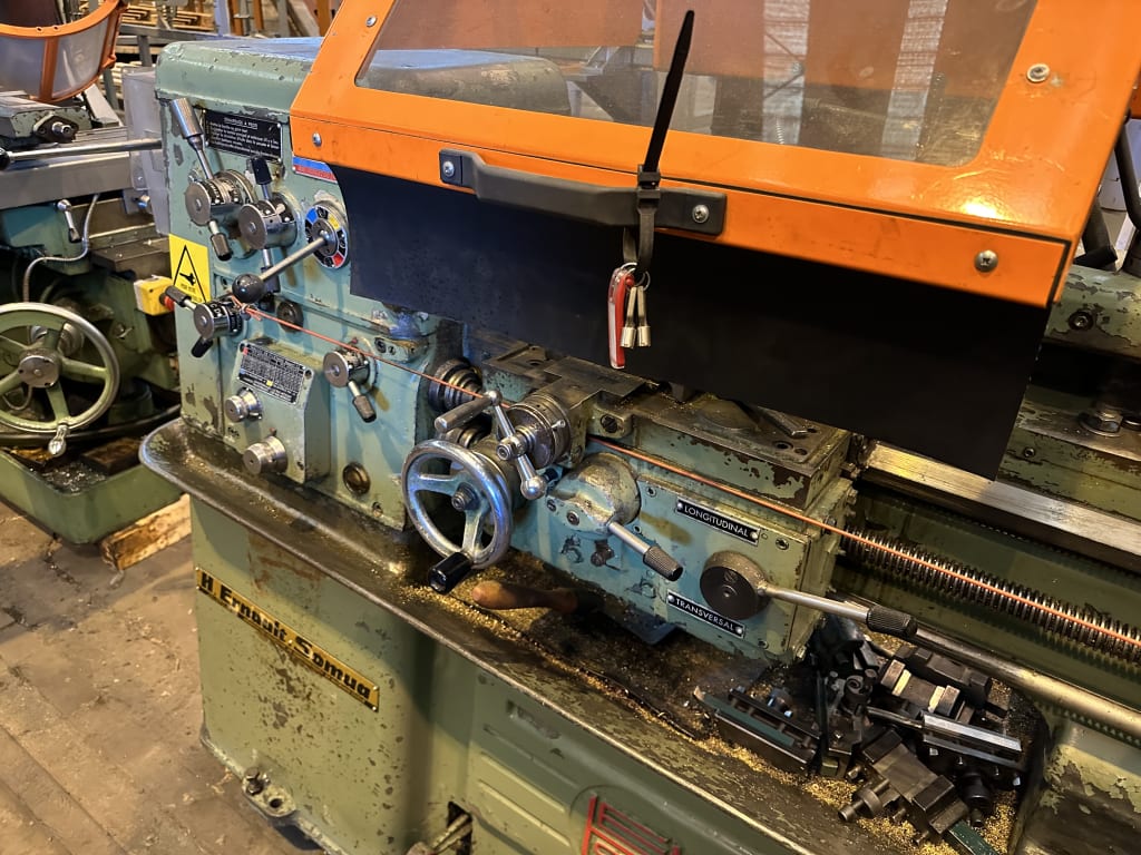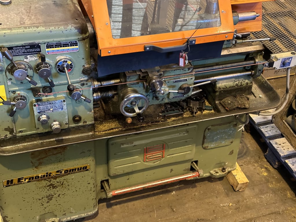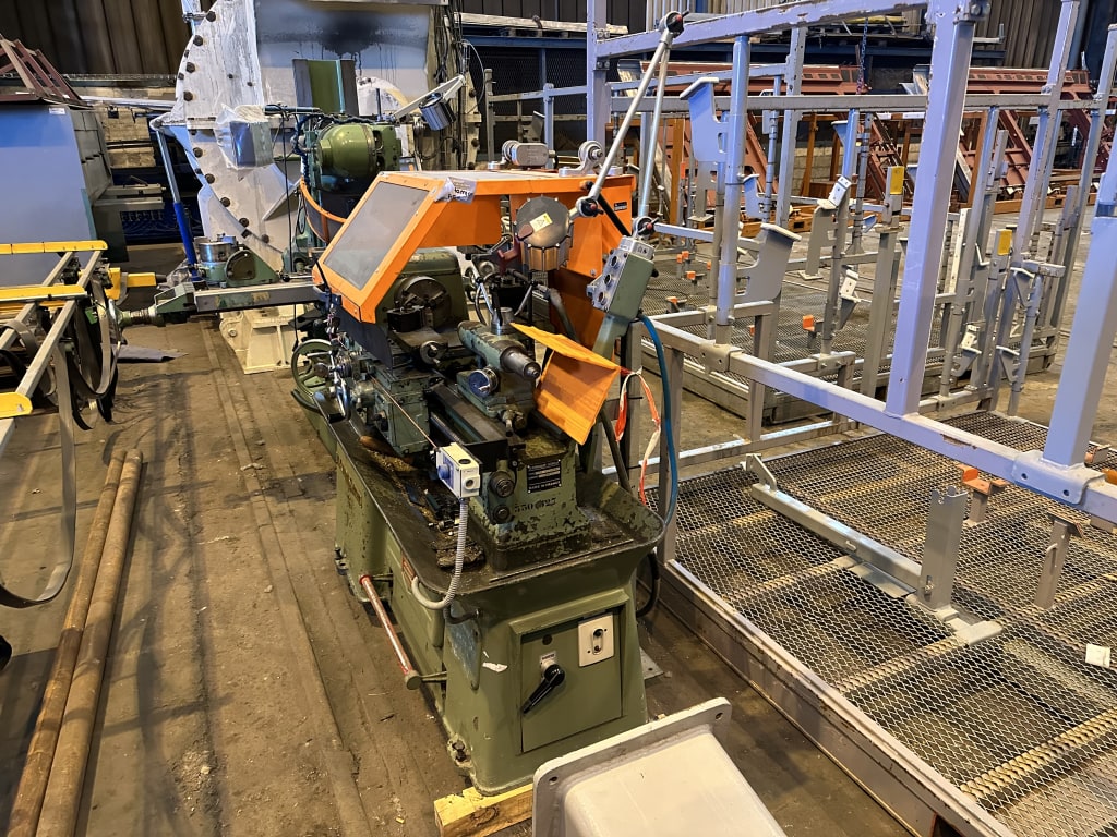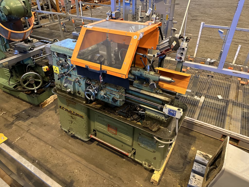 Spindle speed 50-2500 rpm - Distance between centers 500mm - Height of centers 150mm - Ø of the tailstock sleeve 45mm - Width of the bench 210mm - Chuck Ø 160mm - Dimensions 1700x960x1800mm - Approx. 1200Kg - Origin : France. NOTE - A loading fee of EUR 350 will be added to the invoice. Location: 59300 Valenciennes, France - LOT 36
