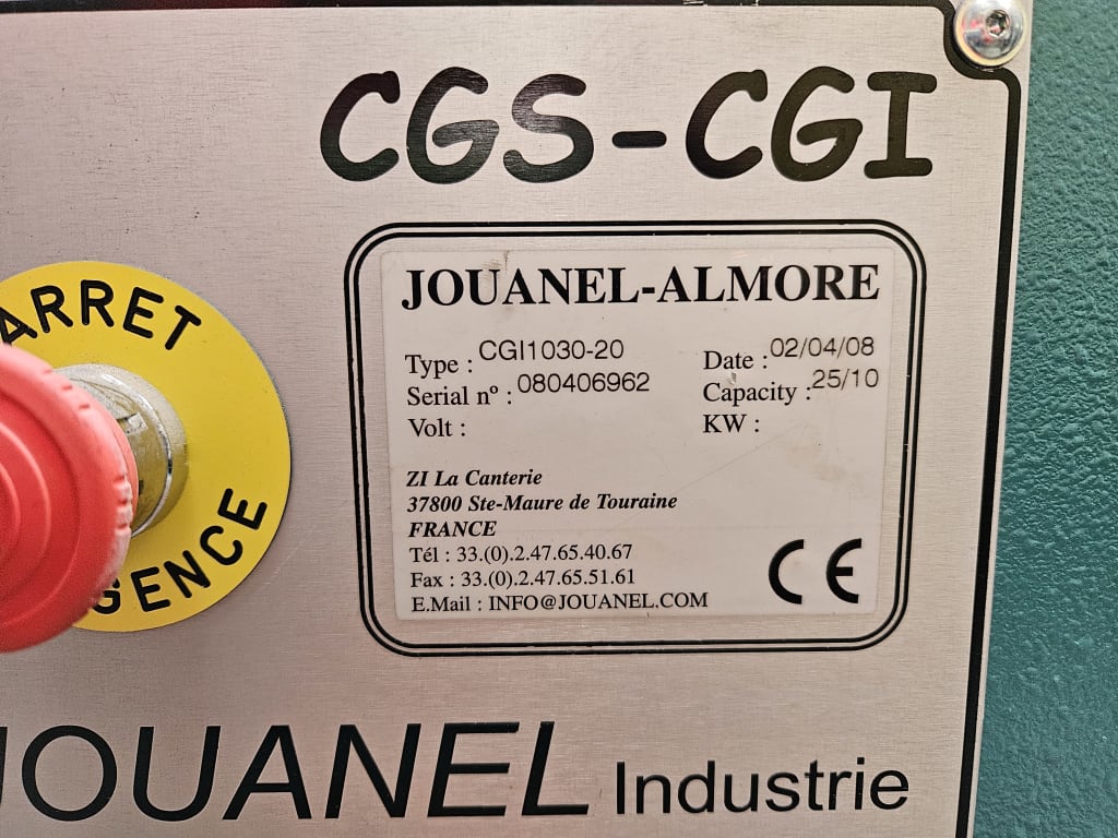 Year 2008 - N° série 080406962 - Type CGi1030-20 - Capacity 25/10 - Approx. 1300Kg - Origin : France. Please Note that this lot has loading charges of EUR350. This will be added to your invoice. - Location : 59300 Valenciennes, France - LOT 25