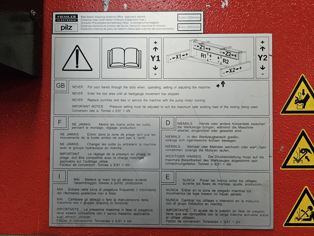 Capacity 3050x6,35mm - Backgauge CNC backgauge travel 1000mm - Dimensions 3700x1990x1960mm - Approx. 12100Kg - Origin : Japan. Please Note that this lot has loading charges of EUR800. This will be added to your invoice. - Location : 59300 Valenciennes, France - LOT 10