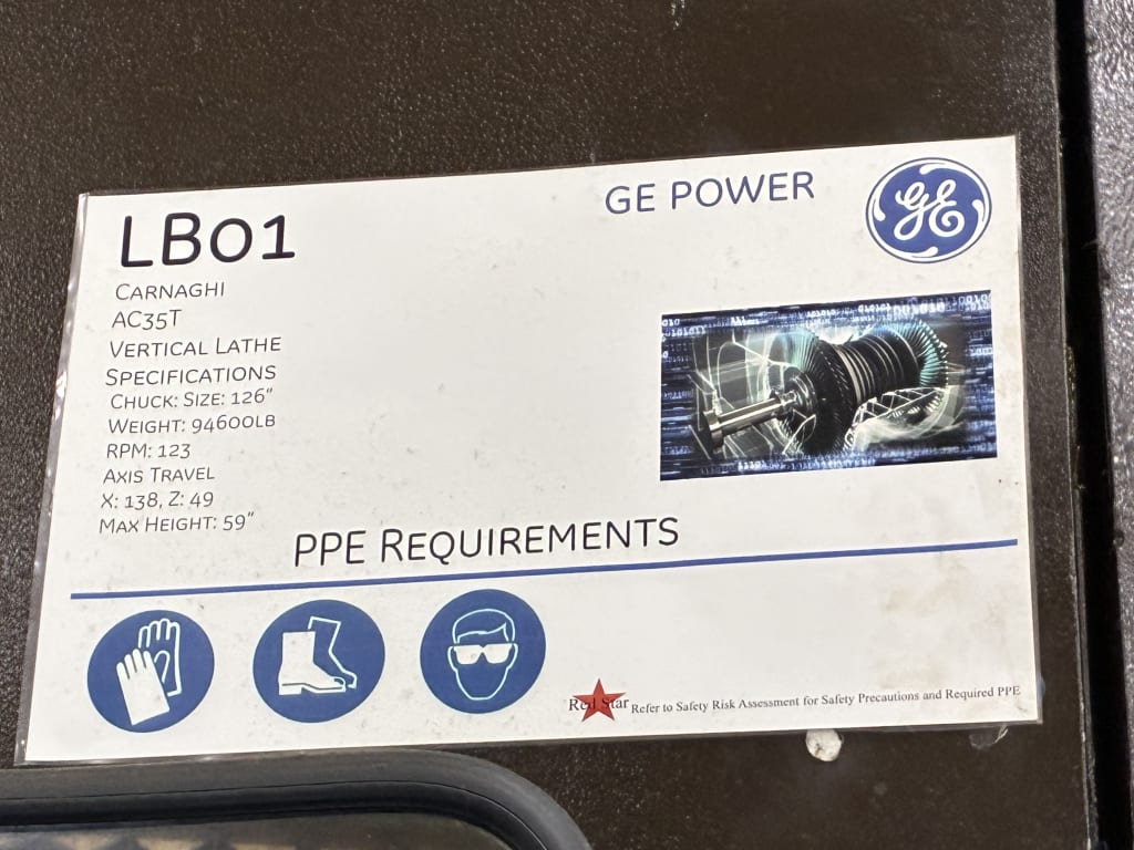 - LB01/ Pietro Carnaghi AC35T CNC Vertical Lathe, 126" (Sold Per GEV Removal Terms)GE terms for removal, starting April 1st, move must be immediate, using GEV approved machinery mover.Sale has ended
