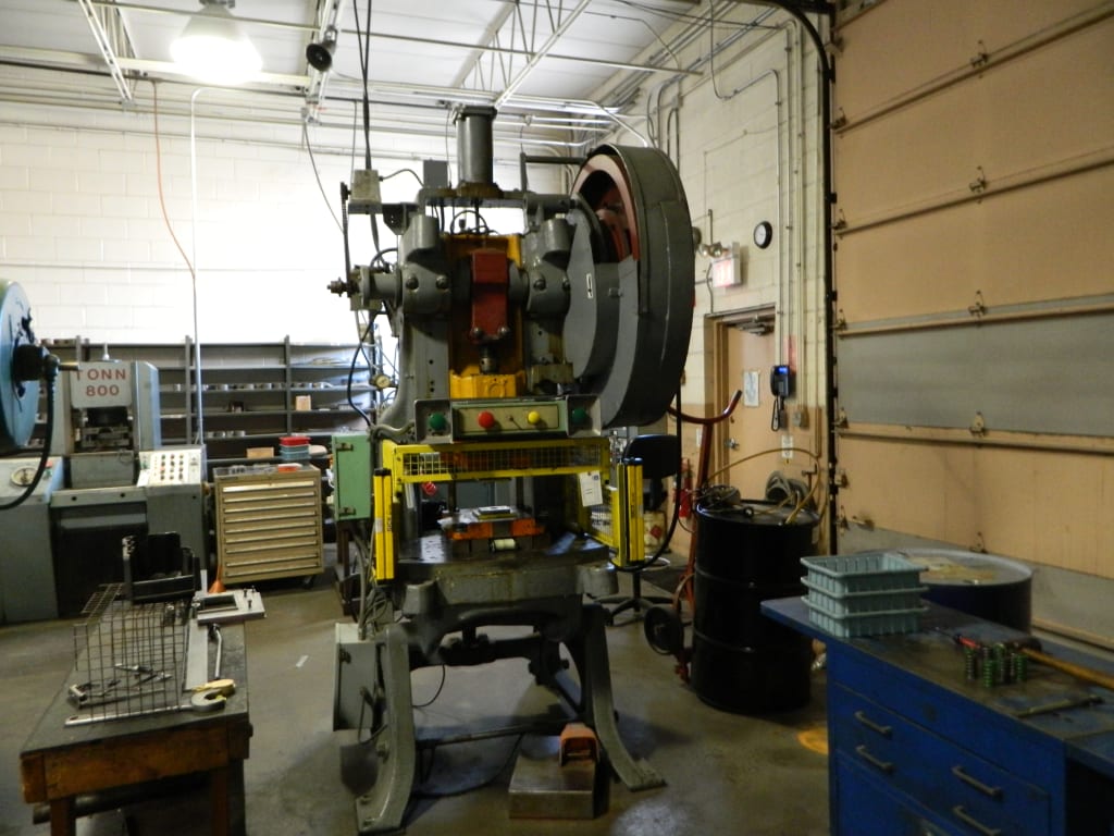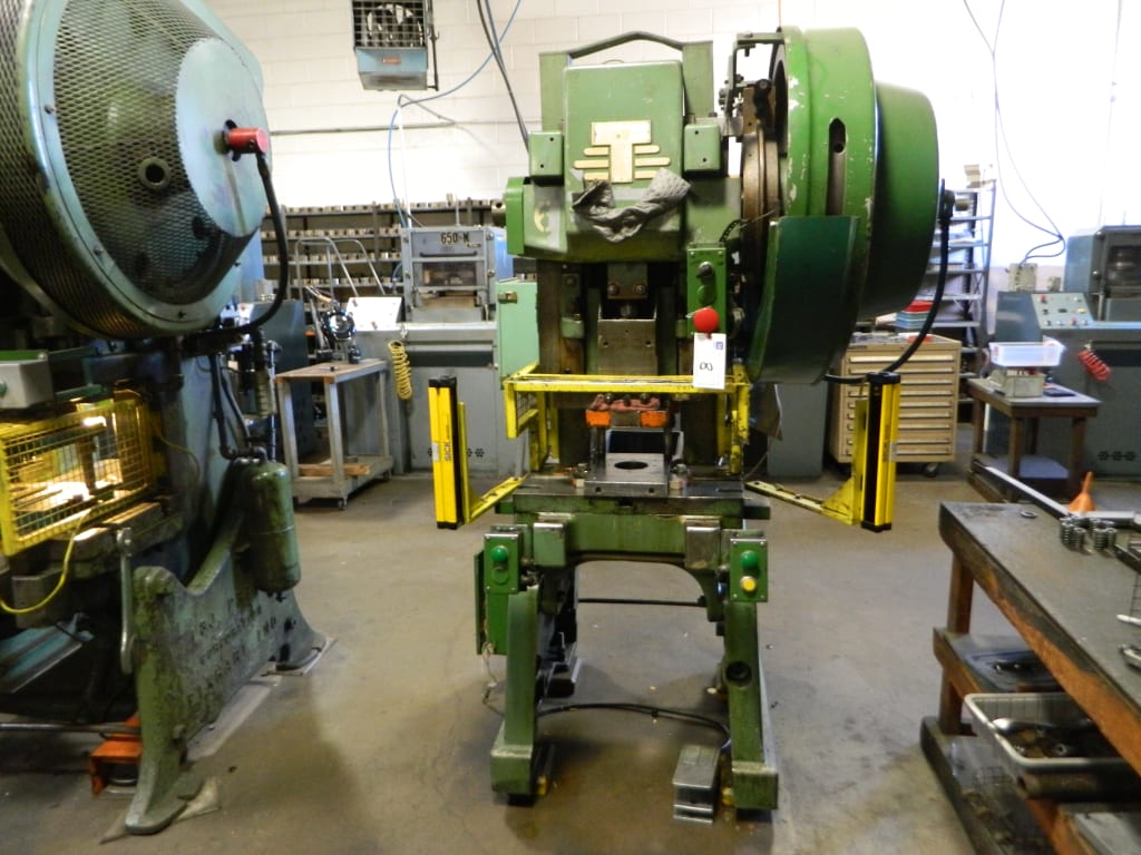 - V&O m# 25ST 25 Ton Capacity OBI Flywheel PressV&O m# 25ST 25 Ton Capacity OBI Flywheel Press, 2" Stroke, 11" Shut Height, Ram Adjustment: 2-1/2″, Bed Size: 24″ x 13″, Ram Size: 10″ x 7″, Throat: 7″, Opening Thru Back: 11″, Speeds: 200 – 600, S/N 25ST-102 w/ Light Curtains